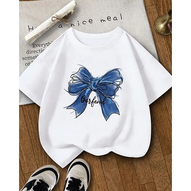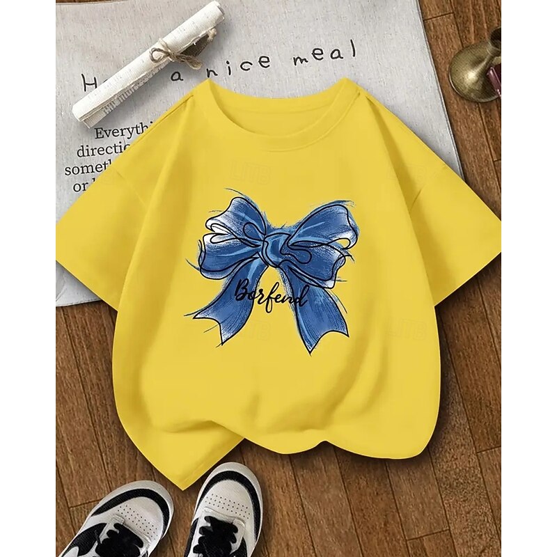More information about Girls' 3D Bow tie T shirt Tee Short Sleeve Summer Spring Fashion Basic Kids 4-12 Years Crew Neck Outdoor Casual Daily Regular Fit