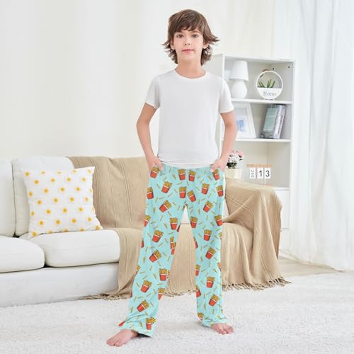 HOT ! ZZXXB French Fries Print Boys Long Pants Soft Trousers Elastic Waist Kids Lounge Bottoms with Pockets S-XL