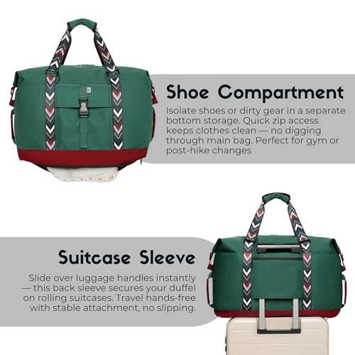 SUNNY BIRD Duffel with Utility Pouch, 40L Weekender Overnight Bag with Shoe Compartment for Travel and Sports (Greenboho) 5