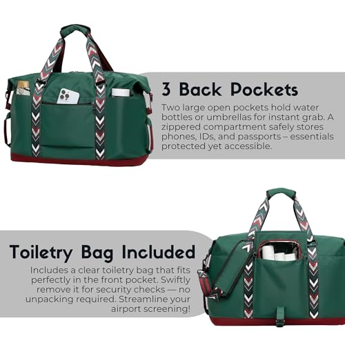 SUNNY BIRD Duffel with Utility Pouch, 40L Weekender Overnight Bag with Shoe Compartment for Travel and Sports (Greenboho) 4
