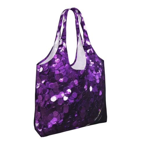 • PORTABLE - It's easy to fold this Beautiful Purple Glitter shoulder grocery bags, put it in your pocket and carry it everywhere, save your space and free your hands. Hand wash or gentle machine wash is recommended, do not bleach