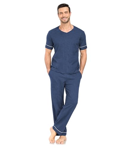 • 100% Cotton: This soft men's cotton pajama set is crafted from ultra soft, breathable cotton fabric, these men's sleepwear offer a skin friendly feel and cozy comfort, perfect for sound sleeping and all-day relaxation