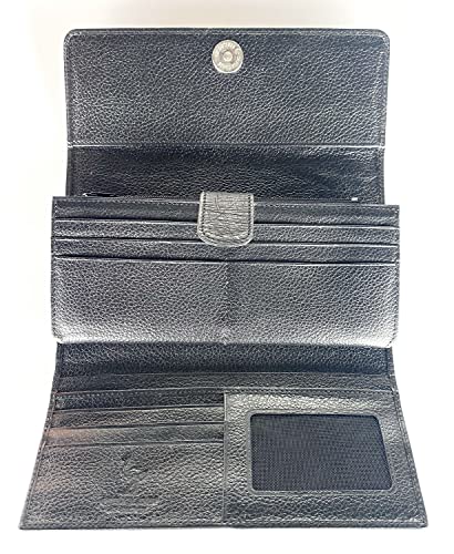 More information about Julie Genuine Real Ostrich Skin Leather Trifold Clutch Long Black Wallet