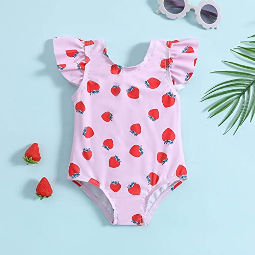 Toddler Girls Ruffles Strawberry Prints 1 Swimwear Beach Swimsuit Bikini Girls Swim Suites 4