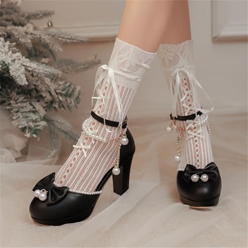 More information about Inornever Mary Jane Shoes Women Platform High Heels Round Toe Single Strap Buckle with Bow Pearl Accents PU Dress Pumps for Women Pink White Black
