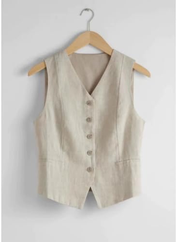 • 【Feature】This Suit for Women is made of Linen, solid color, high waist, vest pants suit,slim fit pants, casual style, slim fit