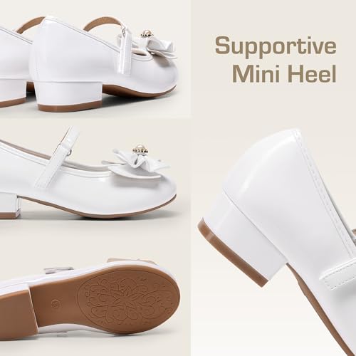 • LOVELY DECORATION: A cute sewn shiny bow knot adorned with a pearl makes these dress shoes classic, elegant and adorable. Perfect gift for your little princess.