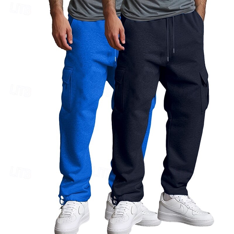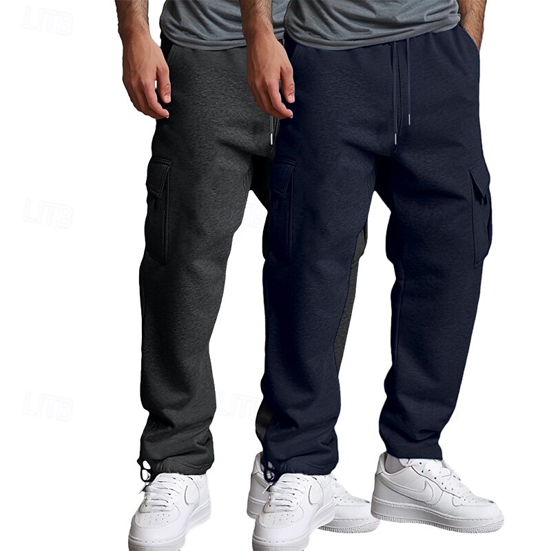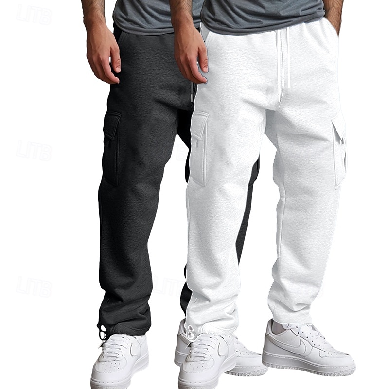 More information about Men's Cargo Sweatpants Fleece Pants Joggers Trousers Straight Leg Sweatpants Drawstring Elastic Waist Multi Pocket Solid Color Warm Moisture Wicking Full Length Casual Daily Running Fashion Streetwear