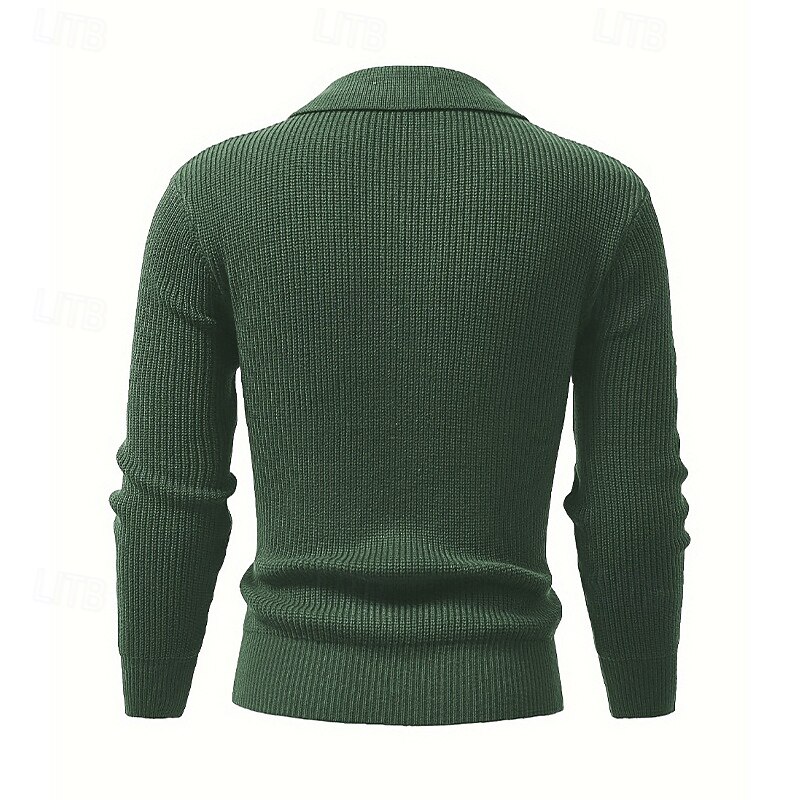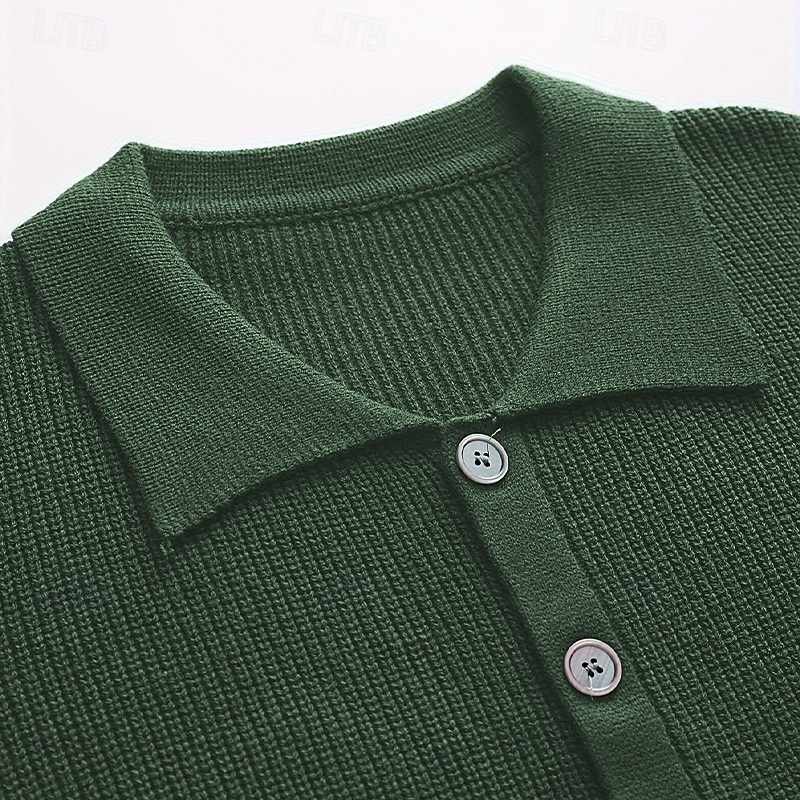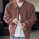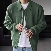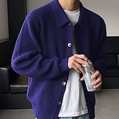 More information about Men's Sweater Cardigan Sweater Ribbed Knit Regular Tops Knitted Plain Turndown Vacation Fashion Casual Daily Wear Clothing Apparel Spring & Fall Black Blue S M L