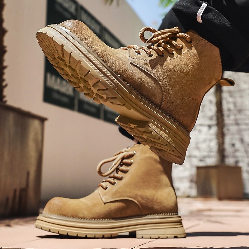 Men's Suede Desert Ankle Boots with Chunky Sole – Casual Lace-Up Outdoor Boots for Fall and Winter Streetwear 24