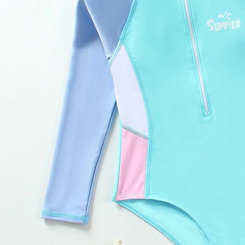 Girls' One-Piece Swimwear High Waisted Long Sleeve Quick Dry Holiday Classic Color Block Summer Beach Swimwear 5
