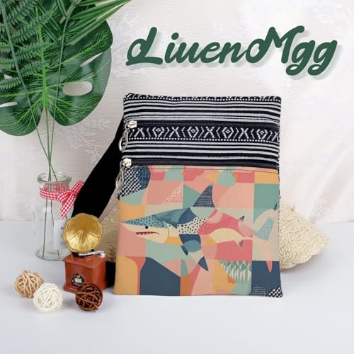 HOT ! Abstract Shark Messenger Bag Small Ethnic Pattern Printed Adjustable Strap Crossbody Zipper Bag Abstract Shark Phone Bag Wallet Cute Shoulder Handbag for Women Friends -2