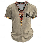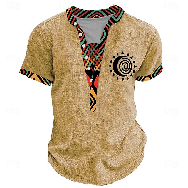 More information about Men's Tribal Bandana Print T Shirt Henley Shirt Short Sleeve 3D Print Designer Ethnic Vacation Casual Daily Summer Spring Yellow Green Khaki Henley Henley T-Shirt