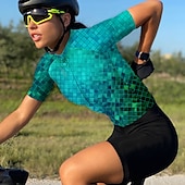 More information about Women's Cycling Jersey Geometric Short Sleeve Bike Jersey Top with 3 Rear Pockets Mountain Bike MTB Road Bike Cycling Quick Dry Reflective Strips Back Pocket Moisture Wicking Sports Red Blue Sky Blue