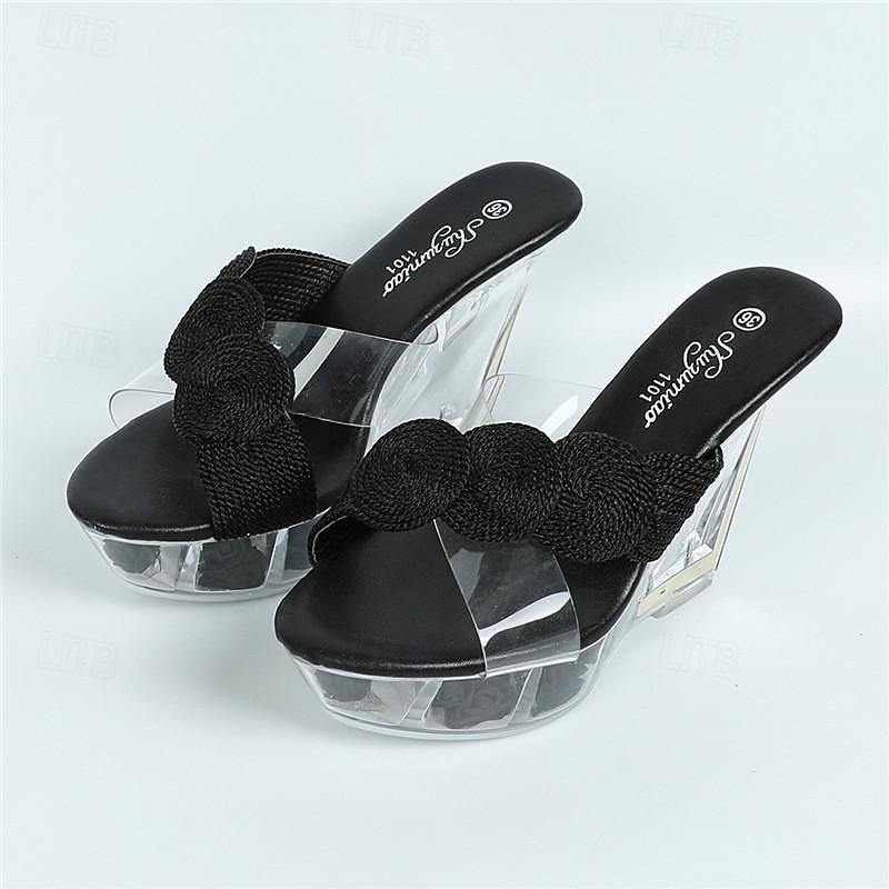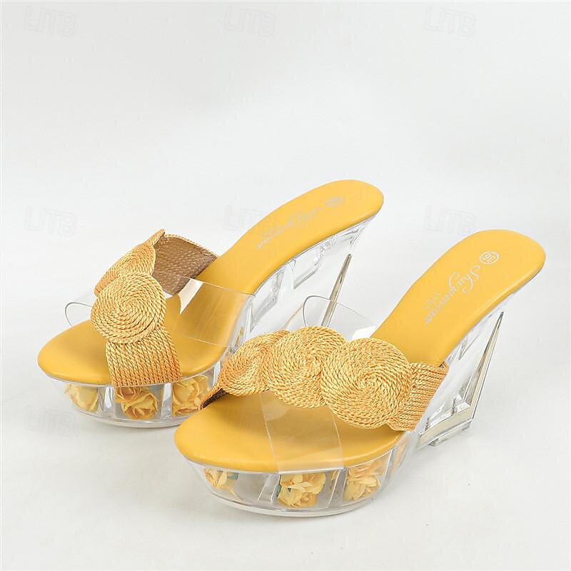 HOT ! Women's Clear Wedge Heeled Sandals Platform Sandals Daily Vacation Casual Comfort Linen Loafer Black White Yellow