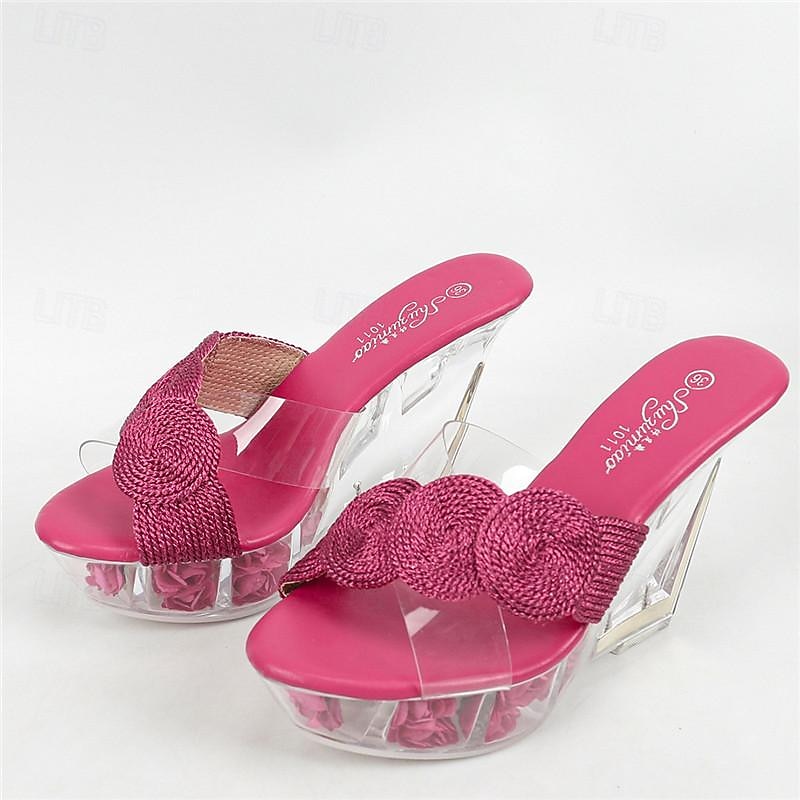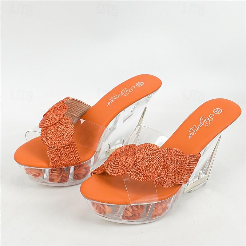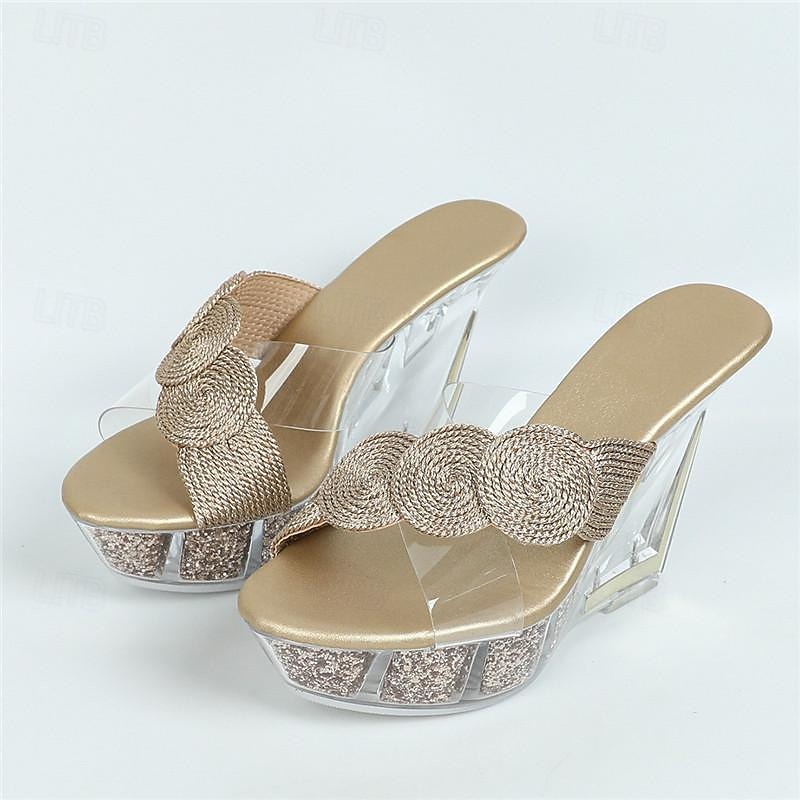 Highlights [Fabric and Materials:] Crafted with a sophisticated linen upper, these women's wedge sandals offer a breathable, comfortable feel perfect for summer wear. The combination of durable rubber outsoles and clear acrylic soles with embedded glitter adds a modern, chic look. [Style and Fit:] Featuring a stylish wedge platform heel that elevates without compromising stability, these sandals provide a flattering 3-4 inch height. Designed for both casual and dressy occasions, they are a versatile addition to any wardrobe. [Design Highlights:] The sandals boast intricately woven metallic straps that add elegance and sparkle, while the transparent sole with glitter details ensures a standout, eye-catching effect. The open-toe design further enhances comfort and breathability, ideal for warmer climates. [Occasions:] Perfect for vacation, daily wear, or casual outings, these wedge heel sandals effortlessly complement a variety of stylish looks. Whether you're heading out for a day trip or a relaxed evening gathering, these sandals suit multiple scenarios. [Size Range:] Available in a wide range of sizes, from US5.5 to US10.5, ensuring a perfect fit for different feet sizes while providing a chic and comfortable wearing experience.