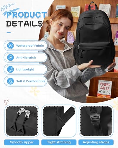 Black Backpack for School, High School Bookbag Back Pack for Teens Girls Boys, Lightweight College Backpack Bookbag for Women Men, plain Casual Daypack Backpack Mochilas Escolares para Adolescentes