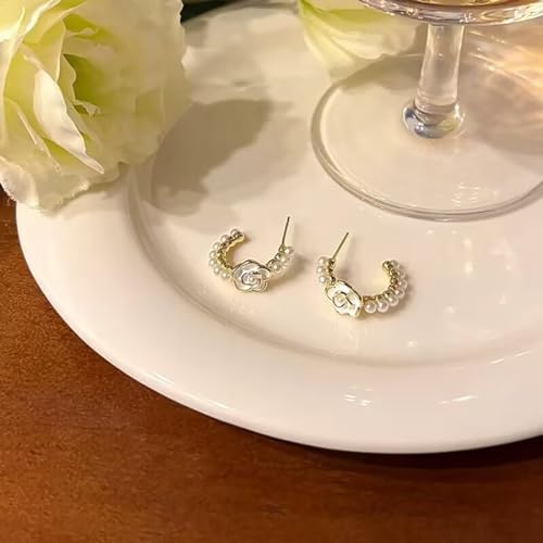 Material: Sterling SilverMetal type: Sterling SilverBack Finding: Lever BackEarring design: HoopGem type: PearlMaterial: Except for pearls and Oil-drop Glaze camellia, all other metal of these pearls earrings is made of genuine 925 Sterling Silver, including earrings posts and the whole earrings. These sterling silver earrings are electroplated with genuine Rhodium/18K Gold/Rose Gold, which is Hypoallergenic, Lead-free, Nickel-free, Cadmium-free and don't turn your skin green.Size: The total length is about 1.5cm/0.6in. Its weight is about 1.94g/pair. Made of 925 sterling silver, it is lightweight and no pressure on the ears. These earrings are for adults or people over 12 years old.Design: These elegant pearls flower hoop earrings add a simple and fashion accessory for your everyday wear.GIFT:Each pair comes with an exquisite and cute gift box. Itβs a good choice for mother, wife, bridesmaids, friends or yourself.SLUYNZ has our own design team and factory, focusing on making 925 sterling silver jewelry in first-class. Our jewelry is more favorable than other the same 925 sterling silver product. faultless for everyday use. High quality materials and excellent craftsmanship ensure long-lasting durability.