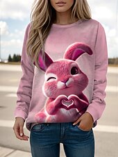More information about Women's Pullover Sweatshirt Graphic Animal Rabbit Casual Long Sleeve Crew Neck Regular Tops Street Casual Holiday Print Pink Blue Purple Green Khaki Spring Fall Winter