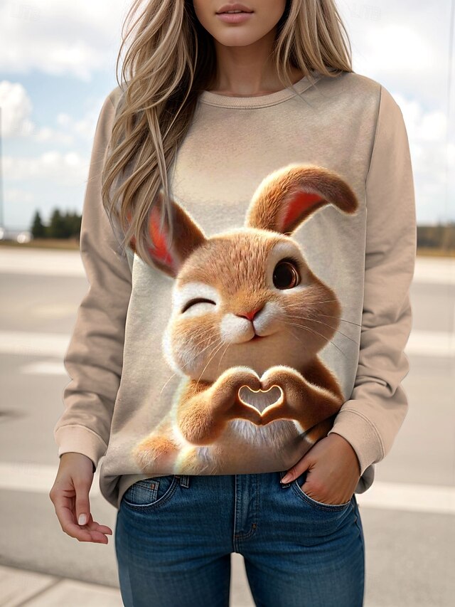 HOT ! Women's Pullover Sweatshirt Graphic Animal Rabbit Casual Long Sleeve Crew Neck Regular Tops Street Casual Holiday Print Pink Blue Purple Green Khaki Spring Fall Winter