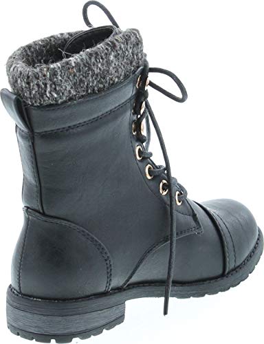 Link Mango-31 Girls Kids Round Toe Military Lace Up Knit Ankle Cuff Low Heel Combat Boots 6