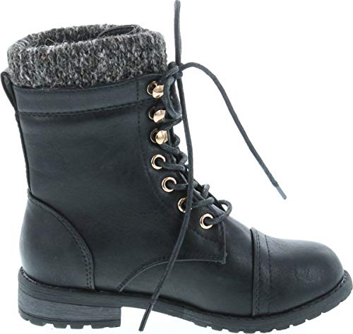 Link Mango-31 Girls Kids Round Toe Military Lace Up Knit Ankle Cuff Low Heel Combat Boots 5