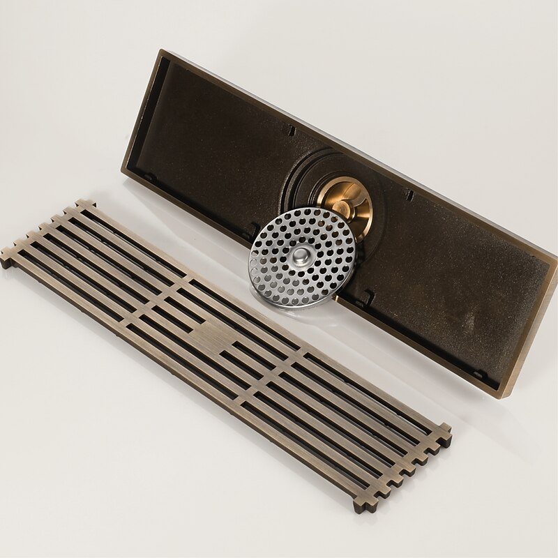 More information about 12 Inch Rectangular Linear Shower Drain Bath Floor with Brick Pattern Grate, Brushed Brass Bathroom Floor Drain, Shower Floor Drain Includes Hair Strainer