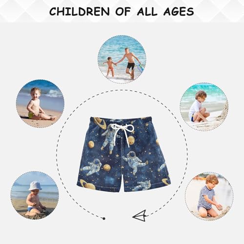 Pigsaly Boys' Swim Board Shorts Stars Planet Space Watercolor Astronauts Boy's Swim Trunks Kids Swimwear 4T 1