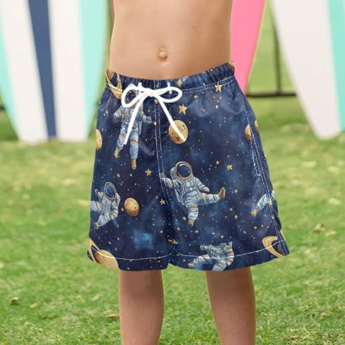 Pigsaly Boys' Swim Board Shorts Stars Planet Space Watercolor Astronauts Boy's Swim Trunks Kids Swimwear 4T 5