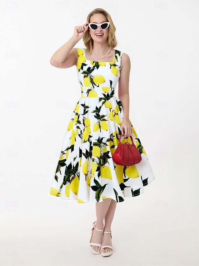 HOT ! Retro Vintage 1950s Rockabilly Knee Length Dress A-Line Dress Swing Dress Floral Fruit A-Line Fancy Dress Women's Carnival Masquerade Vacation Casual Daily Retro Theme Party Adults' Dress Spring