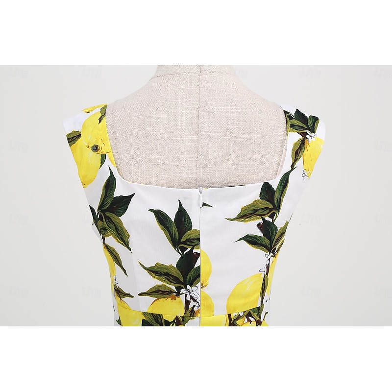 Retro Vintage 1950s Rockabilly Knee Length Dress A-Line Dress Swing Dress Floral Fruit A-Line Fancy Dress Women's Carnival Masquerade Vacation Casual Daily Retro Theme Party Adults' Dress Spring 14