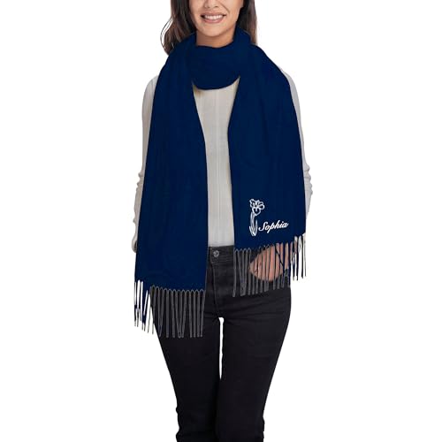 HOT ! Personalized Winter Scarf for Women Custom Embroidered Name and Birth Flower Scarf Customized Birthday Christmas Gifts for Her
