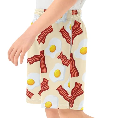 J JOYSAY Fried Egg Bacon Tan Boys Athletic Shorts Kids Youth Casual Shotrs with Elastic Waistband Pockets 4