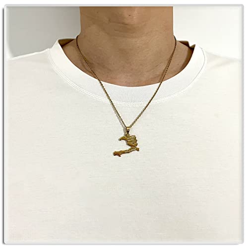 • Xusamss Fashion presents this 18K Gold Electroplated Alloy Haiti Map Pendant Necklace with its unique design details.The map pattern on the pendant is a interpretation of the Haitian landscape.