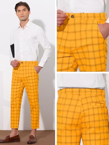 • 【CLASSIC DESIGN】Plaid patterned, color block, flat front, zipper closure, stylish checked ankle length dress pants.