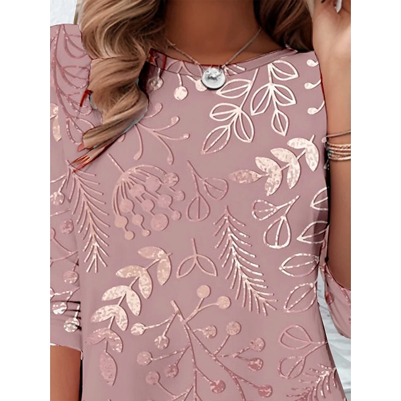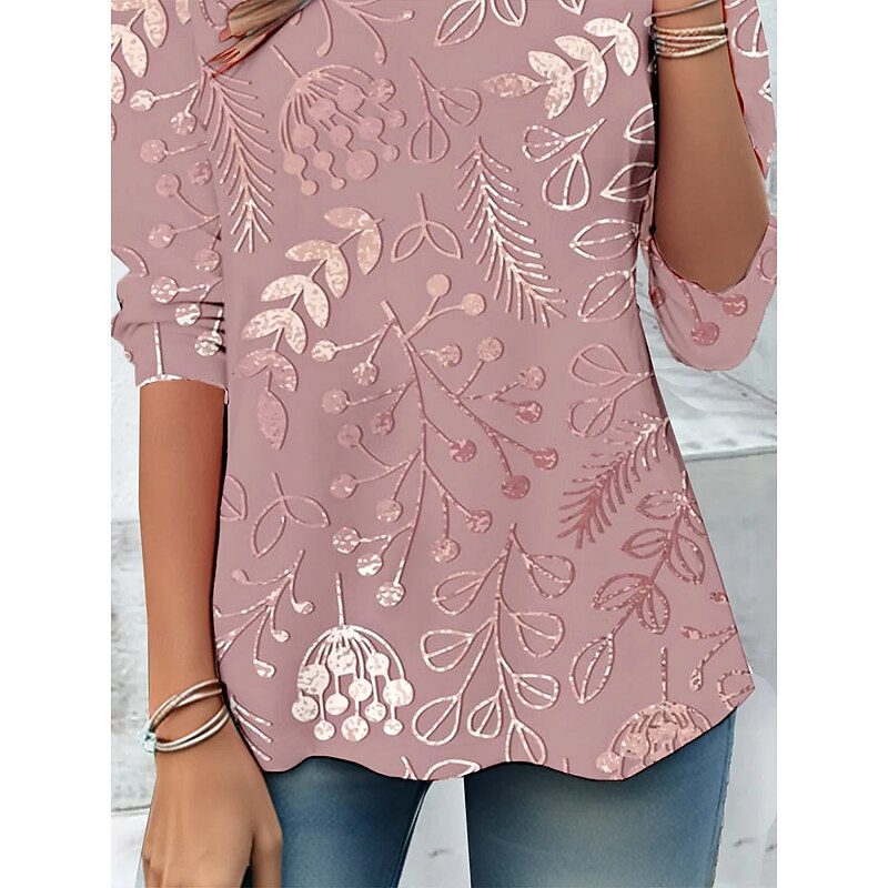 More information about Women's T Shirt Floral Graphic Abstract Vintage Stylish Classic Long Sleeve Crew Neck Round Neck Regular Tops Daily Print White Pink Spring Fall Winter