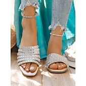 HOT ! Women's Rhinestone Strappy Sandals – Chic Silver Slide Sandals with Square Toe for Summer, Parties, and Special Occasions