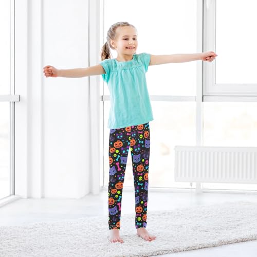 senya Girls Printed Leggings Yoga Pants Pumpkin Bone Skullbone Cat Pattern for Kids in 4t to 10 Years, 4T 7