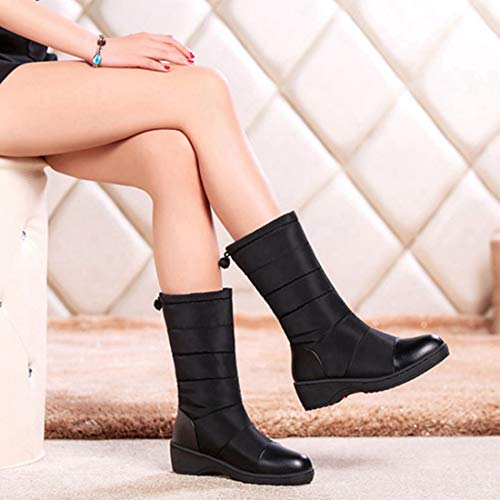 • ➤UNIQUE QUALITY & COMFORTABLE】: Womens Ladies Winter Mid Calf Tall Waterproof Insulated Rain Snow Boots for women Shoes, Elastic Stretch Easy On/Off; Anti-slip Slip Pull On Platforms Wedge Lightweight, High Strength, Good Fexibility, Finished with Lightly Cushioned for All Day Comfy and Eco-Friendly Design. Instep ventilation pores for your comfort.