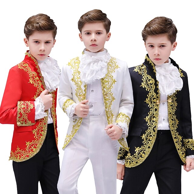 More information about 3 Pieces Ring Bearer Suit Boys Kids Suit Formal Suit Suit & Blazer Clothing Set Party Special Occasion Vintage Cool Formal Graphic Jacquard Black White Red Polyester