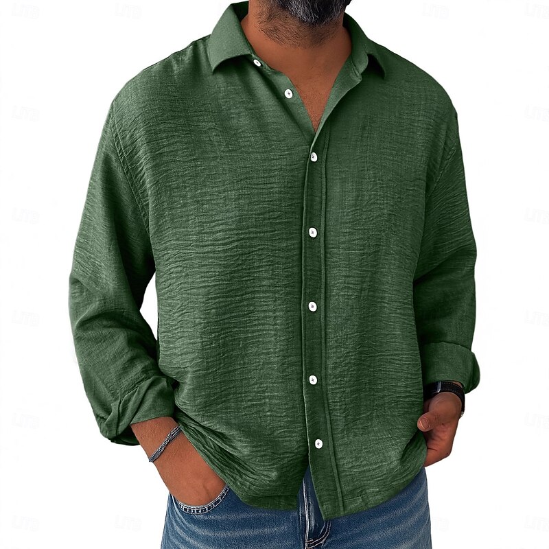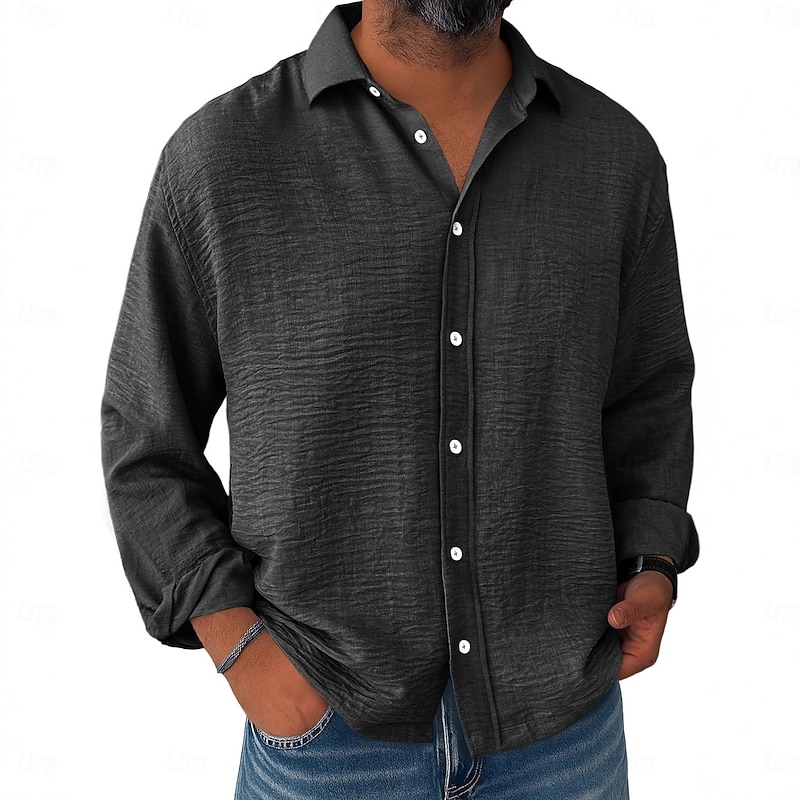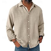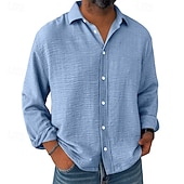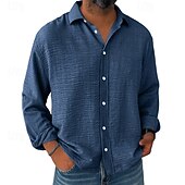 More information about Men's Shirt Casual Shirt Button Up Shirt Black White Wine Navy Blue Blue Long Sleeve Solid Color Turndown Vacation Casual Plain Clothing Apparel Fashion Streetwear Daily