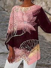 More information about Women's T Shirt Tee Top Floral Fashion Modern Long Sleeve Crew Neck Regular Tops Daily Print Asymmetrical Pink Spring Fall