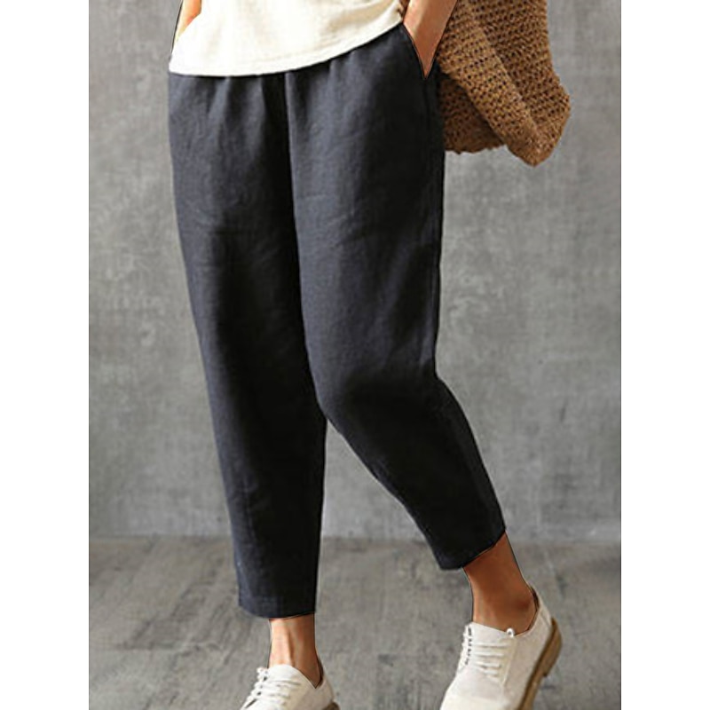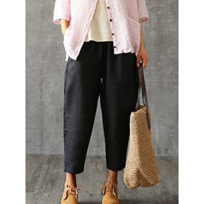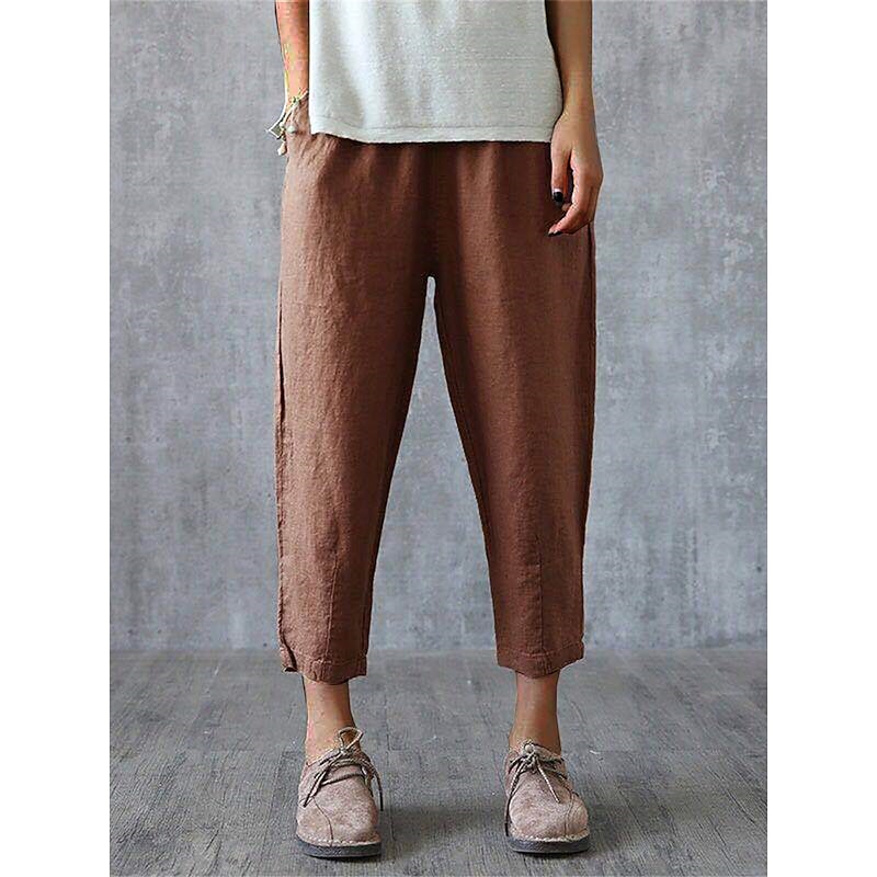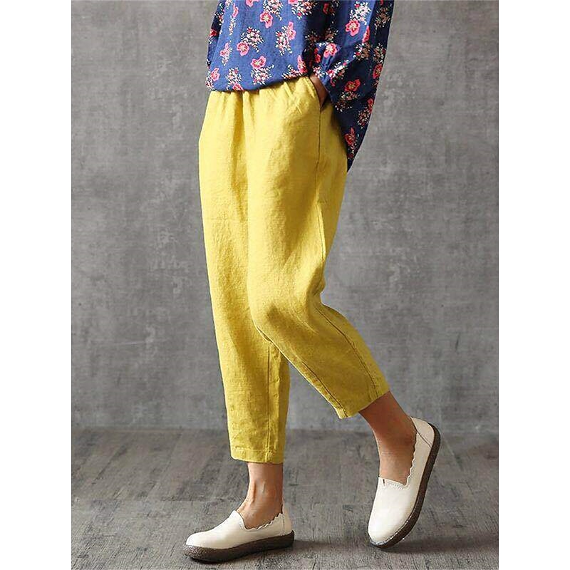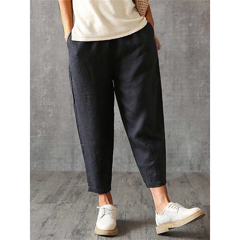 HOT ! Women's Cotton Linen Pants Pants Trousers Baggy Pants Fashion Streetwear Full Length Mid Waist Plain Pocket Elastic Waist Baggy Breathability Soft Outdoor Micro-elastic Vacation Daily Daily Wear