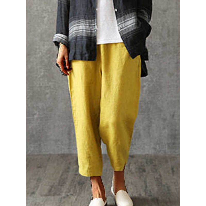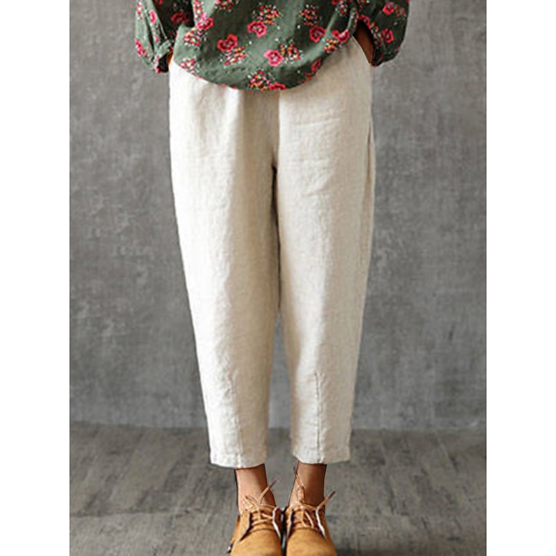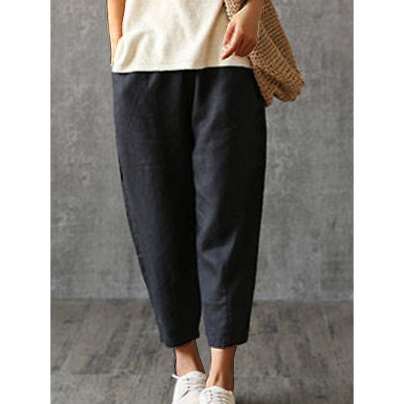 More information about Women's Cotton Linen Pants Pants Trousers Baggy Pants Fashion Streetwear Full Length Mid Waist Plain Pocket Elastic Waist Baggy Breathability Soft Outdoor Micro-elastic Vacation Daily Daily Wear