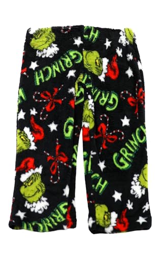 - Festive Design: Adult and kids' sets feature a long sleeve top with the Grinch's face and 'Grinchmas' text, paired with plush pants in an each-over Grinch print