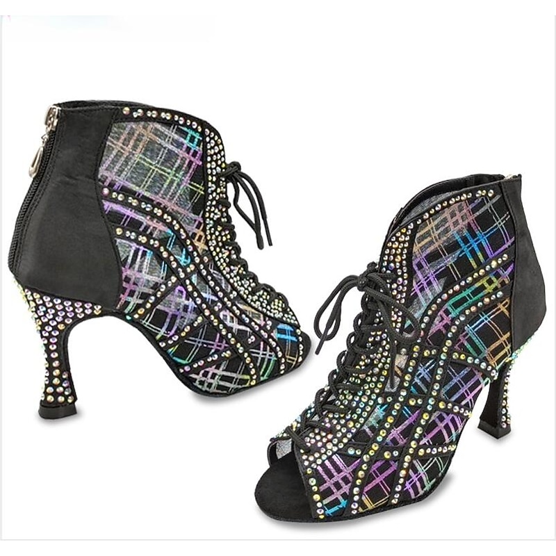 More information about Women's Rhinestone Lace-Up Mesh Latin Dance Shoes – Glitter High Heel Ballroom Sandals for Salsa, Party & Competition