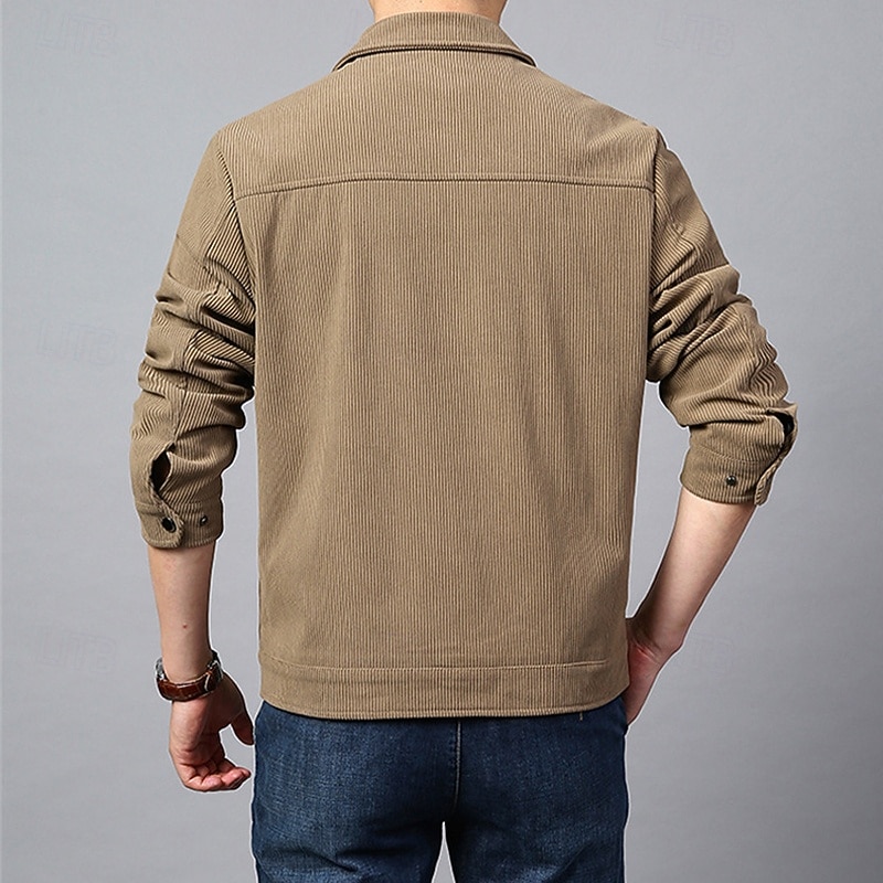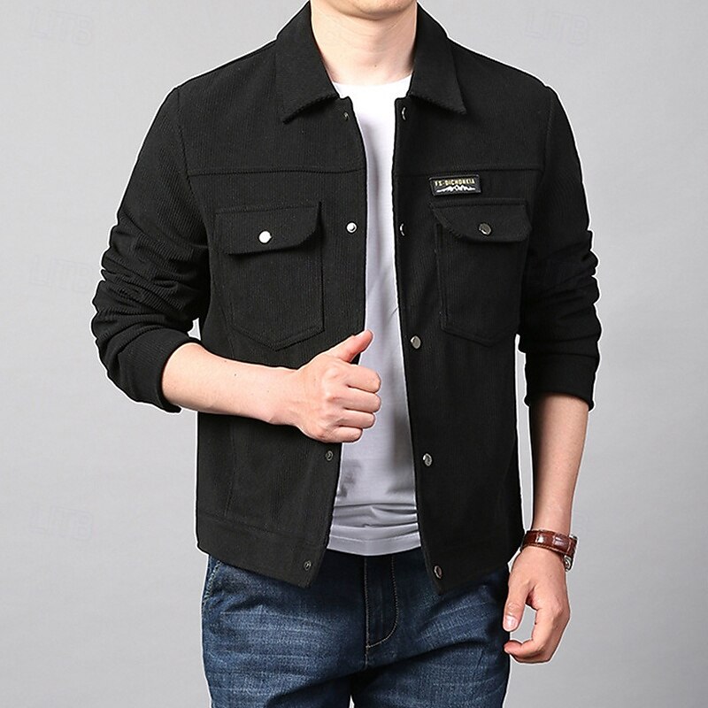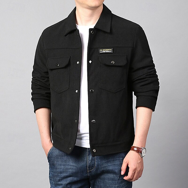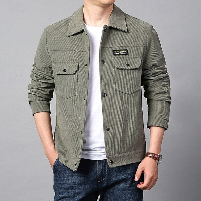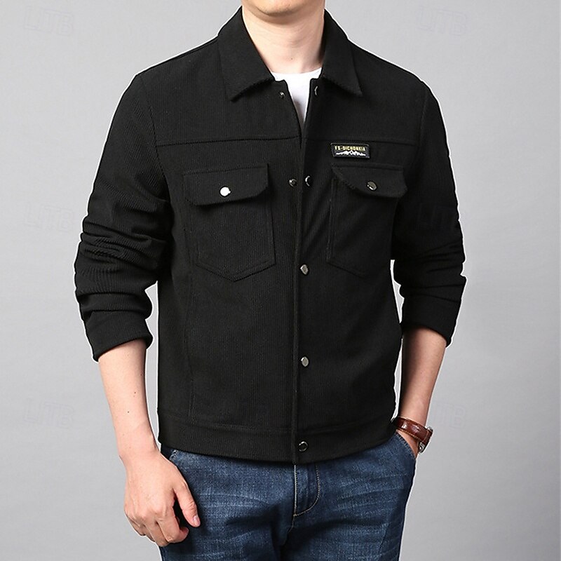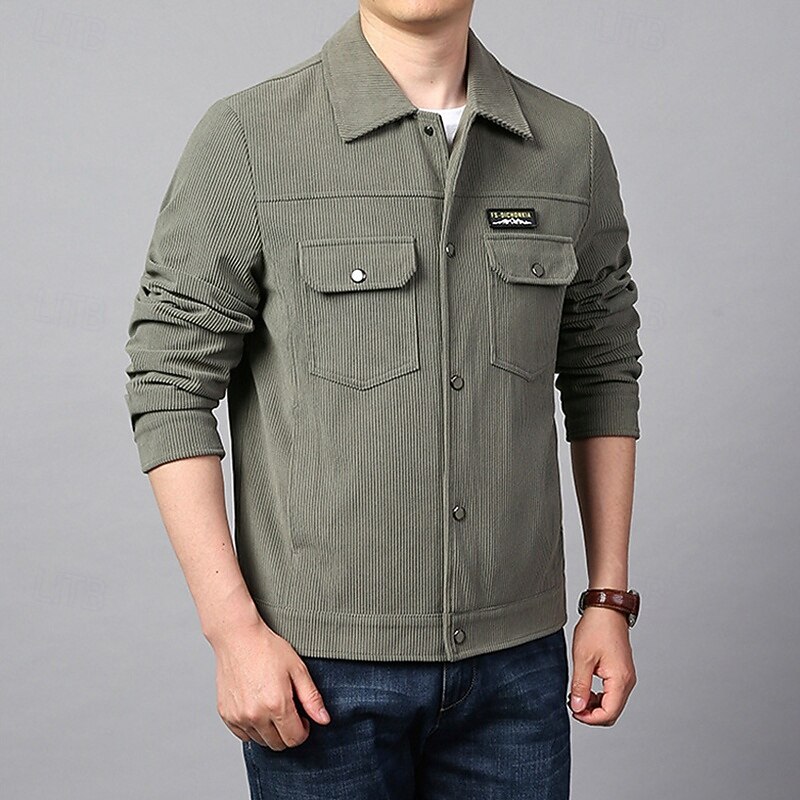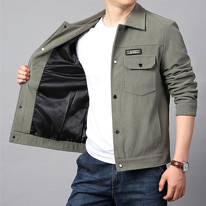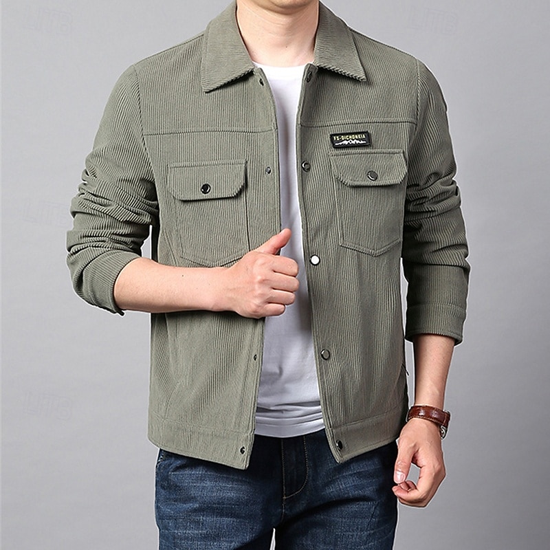 HOT ! Men's Lightweight Jacket Corduroy Jacket Cargo Jacket Casual Jacket Vacation Daily Warm Pocket Spring Fall Plain Fashion Classic Lapel Regular Black Green Khaki Jacket