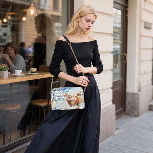 HOT ! Highland Cow Tree Snow Crossbody Bags for Women Leather Purses Small Shoulder Handbags
