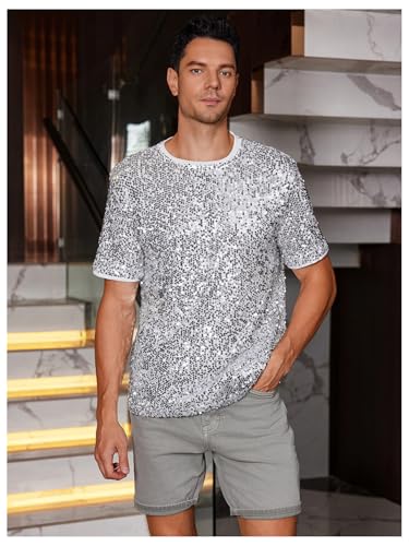 More information about OYOANGLE Men's Sparkly Sequin Shirt Crew Neck Short Sleeve Shiny Tee Tops Nightclub Glitter T- Shirts