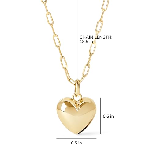 Ana Luisa Lev Puffed Heart Necklace for Women - Paperclip Chain w/ 14K Gold Plated & Silver Rhodium Plated Small Heart Necklace Gold Pendant - Hypoallergenic, Water-Resistant, Tarnish-Free Jewelry 1